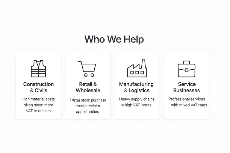 Most businesses overpay VAT without realising. We specialise in identifying and recovering those hidden amounts, turning HMRC rules into money back in your account.
